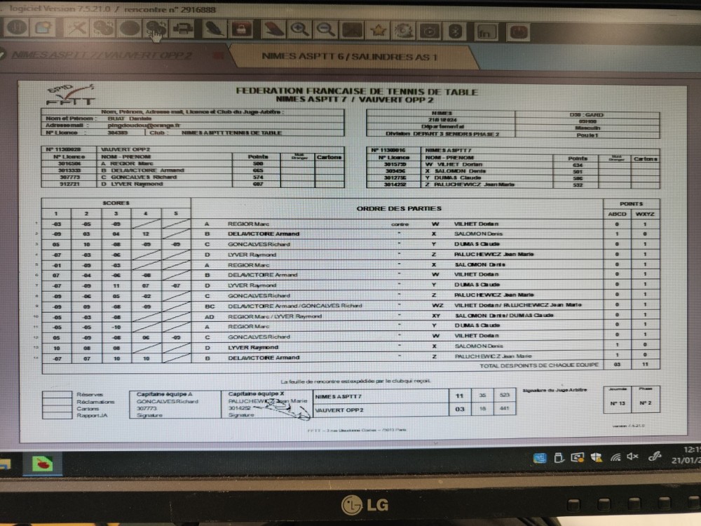 Excellent départ pour l'équipe 7 qui a maîtrisé Vauvert 2, résultat 11 - 3.