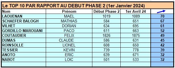 Les meilleures progressions depuis le début du championnat 2023/2024 (phase 1 2 en cours).