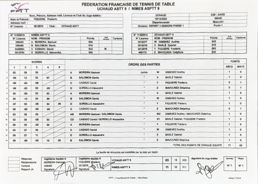 🏓 Toujours bien reçu à Uchaud, par un dimanche matin de décembre, nous alignons 4 joueurs motivés !Mais le froid glacial de ce grand gymnase aura refroidit les ardeurs. Avec un niveau de jeu bien inférieur à ce que l'on doit proposer, nous avons su l'emporter !
